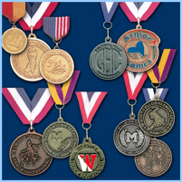 If it's Medals you are looking for, you have found the right place. Whether it be Custom Die Struck Medals for your Track Meet Tournament, or Challenge Coins to commemorate our Armed Services, Plaques and Such can deliver for the specific needs of our customers. We also have an extensive stock catalog of Die Struck Medals available.